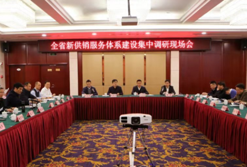 沈省文副主任讲话强调,站在省供销社成立70周年这个特殊的历史节点上,大家要深刻理解新供销服务体系建设工作的重要性。沈主任指出,目前我省新供销服务体系建设取得了较大成效,全省供销社共发展日用消费品经营企业100余家,连锁经营门店1.49万个,年日用消费品零售额500多亿元;建设托管农批农贸市场127家,农批市场年交易额超1000亿元,占全省总额一半左右。同时,我省新供销服务体系建设还存在体制机制不顺、系统联合合作不够、动力活力不足等问题。为进一步加强新供销服务体系建设,沈主任要求:一是要加强合作意识,要集聚系统优势,抱团发展。二是要坚持问题导向,克难攻坚,抓小抓细抓实。三是要探索交流机制,强化系统交流,深化系统合作。沈主任希望全省系统紧密联结在一起,在新供销服务体系建设上出成效、出亮点,在助推农民增收方面发挥更加重要的作用,为全面深化“三位一体”改革、服务乡村振兴贡献力量。