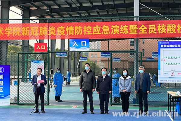 演练开始前,学校党委书记、校新冠肺炎领导小组组长劳赐铭发表讲话,他指出,当前我省宁波、绍兴、杭州等地疫情爆发,及时组织疫情防控演练及开展全员核酸检测是非常必要的,及时核酸检测有助于防控疫情,筑牢疫情防控坚实屏障。他鼓励大家在疫情防控这个重要时刻做好自身防护,共同打赢疫情防控遭遇战。