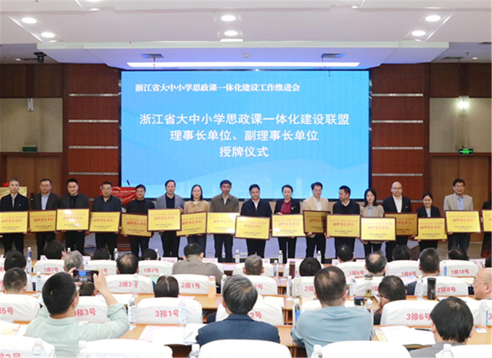 会上,教育部大中小学思政课一体化共同体(浙江省)揭牌成立,全省大中小学思政课一体化建设联盟理事长单位、副理事长单位接受授牌。浙江师范大学、温州大学、杭州职业技术学院、台州市教育局、绍兴市建功中学教育集团、嘉兴市实验小学作了交流发言。秦宣和教育部概论课教指委委员、中国红色文化研究会常务理事渠长根教授围绕大中小学思政课一体化建设作专题报告。