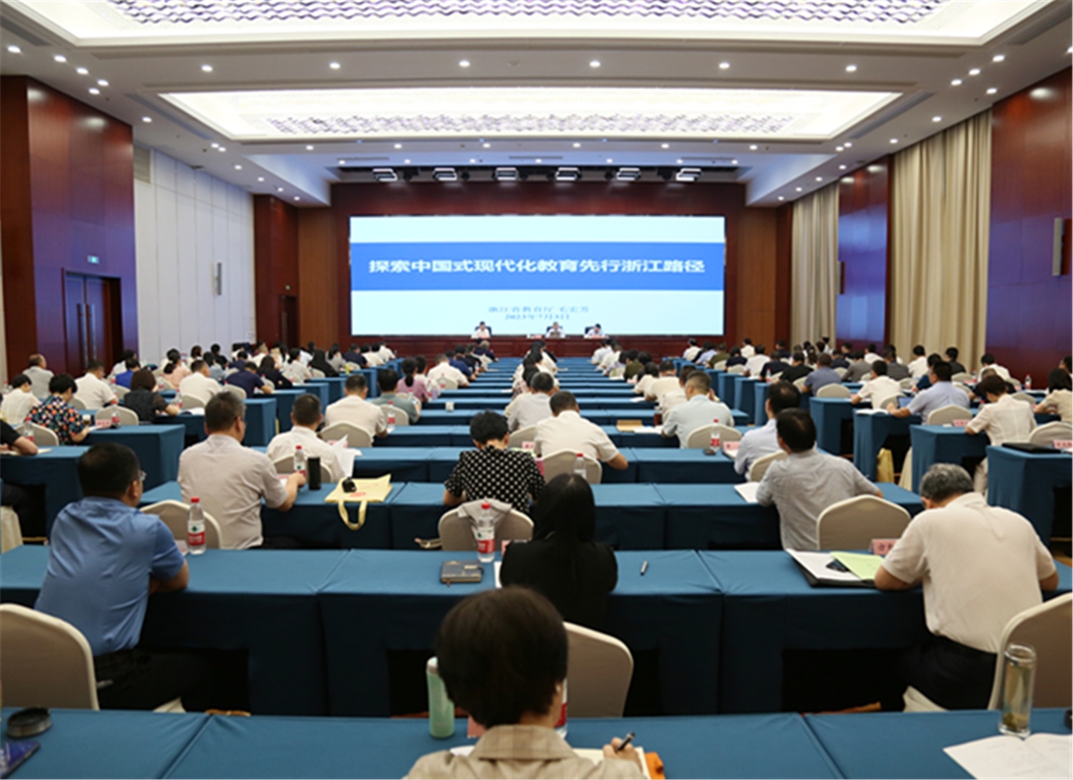 毛宏芳强调,实现中国式现代化教育先行、建设教育强省,既要建高原,也要建高峰。必须明确基础教育现代化是教育现代化的底座。深入实施学前教育第四轮行动计划、城乡义务教育共同体建设、县中崛起行动、山区海岛县教育高质量发展行动,全力推进国家学前教育普及普惠县和义务教育优质均衡发展县创建。没有高等教育现代化,就没有教育现代化。高等教育是整个教育体系的龙头,在实现中国式现代化中发挥着极其重要的战略作用。今年以来,我省狠抓顶层设计,全面迭代高教强省政策体系,点面结合推动全省高等教育整体提升,同时积极争取教育部支持,推进浙江高等教育综合改革先行先试。没有教育国际化,就没有教育现代化。要抓项目、抓合作、抓人才,积极引入国际优质教育资源、全球高层次人才,加快构建高质量教育体系,不断提升我省教育现代化水平和质量。教育是教育科技人才“三位一体”发展的引领者、实践者、主导者。高等学校是实现“三位一体”的主阵地、主力军。去年以来,我省谋划实施“双百行动”,创新建立“高校筑巢、地方供粮、教育厅牵线”的引才用才机制,推动形成教育引领、科技搭台、人才支撑的一体发展、整体跃迁格局。建设学习型社会是教育现代化的题中之义。我省在平湖市开展试点,大力推进普惠性人力资本提升,全面厘清了“四张清单”,把继续教育资源、终身学习平台送到老百姓家门口,把高等教育办到乡村社区、企业车间,全面开展“学历+技能”的继续教育和职业培训。