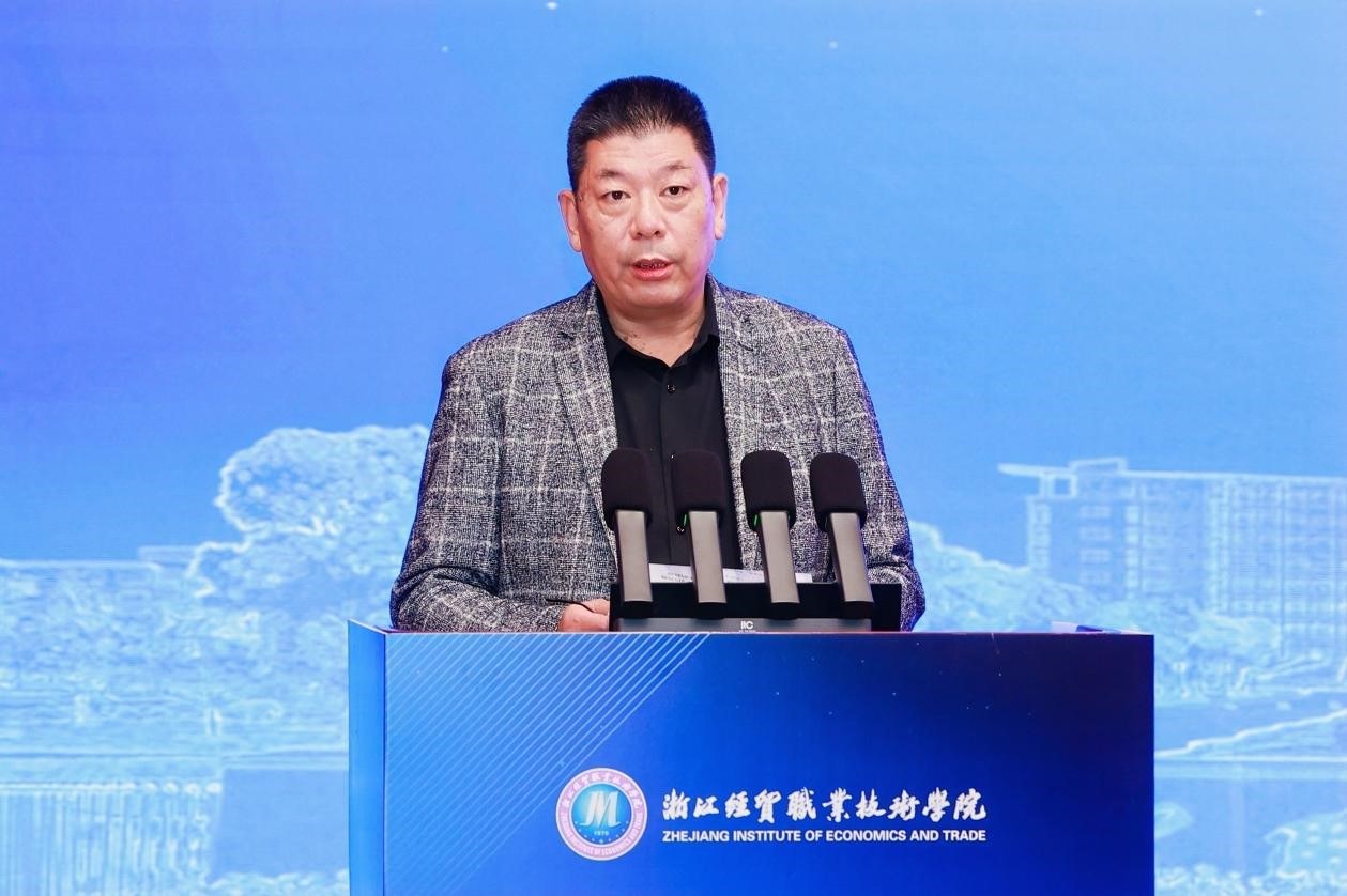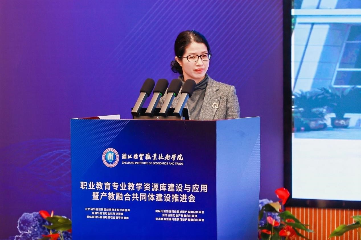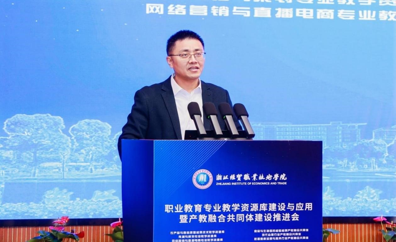 吴洪贵作题为《“服务好、支撑好”重点产业发展的“数智化、模块化”专业教学资源建设》的专题报告。报告结合“新双高”内在逻辑演变,阐述专业教学资源库在导向功能、遴选标准、实施方向、内涵建设等四方面的变化,并对新一轮专业教学资源库建设的关键要素、建设路径、保障机制等内容进行了全面分析。